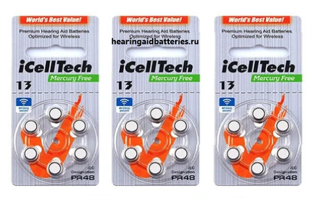 Батарейки №13 для заушных слуховых аппаратов средней мощности. Подходит к слуховым аппаратам любого бренда. Срок службы составляет от 10 до 20 дней, в зависимости от мощности и функций слухового аппарата. Icelltech - это батарейки высшего качества по конкурентоспособной цене! Элементы питания iCellTech позволяют повысить мощность при высоком потреблении тока и обеспечивают более высокую производительность слуховых аппаратов. В составе батареек не содержится ртуть, поэтому элементы питания более экологичны и безопасны. Перед использованием необходимо снять защитную пленку и подождать 1 минуту, затем поставить батарейку в аппарат.
