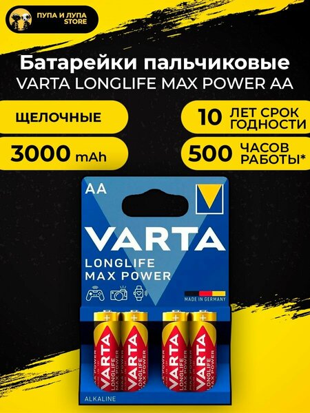 Батарейки Varta Longlife Max Power AA/LR06 1.5V (4шт) — Надежность и Долговечность для Ваших Устройств! Представляем вам батарейки Varta Longlife Max Power типа AA/LR06 — надежный источник энергии для вашего дома и офиса. Эти батарейки обеспечат длительную и стабильную работу ваших любимых устройств. Ключевые характеристики: