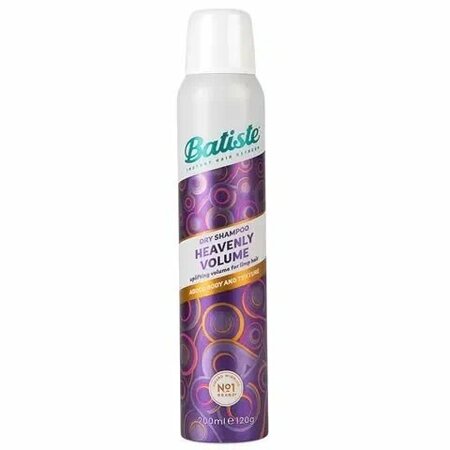 Сухой шампунь Heavenly Volume подарит Вашим волосам небесный объем, который продержится долго! У данного шампуня фиксация менее выраженная, чем у Batiste Dry Shampoo Volume XXL. Шампунь Heavenly Volume предоставляет божественный, осязаемый объем с натуральным движением и великолепный блеском, а также придает волосам невероятную гладкость. Сухой шампунь Batiste быстро очищает и освежает волосы. Сухой шампунь устраняет жирность корней, придавая скучным и безжизненным волосам необходимый блеск, без использования воды. Быстро освежает и повышает силу волос, придает телу волоса и текстуру и оставляет ощущение чистоты и свежести. Сухой шампунь идеален для использования, когда у вас нет времени мыть голову обычным шампунем. Сухой шампунь быстро и эффективно абсорбирует грязь и жир, тем самым очищая волосы. Способ применения встряхните баллон и нанесите Batiste на корни волос с расстояния 30 см, массирующими движениями рук вотрите его в голову, уложите волосы как обычно Состав Butane, Isobutane, Propane, Oryza Sativa (Rice) Starch, Alcohol Denat, Parfum (Fragrance), Limonene, Linalool, Distearyldimonium Chloride, Cetrimonium Chloride, CI 77492, CI 77499 (Iron Oxides)