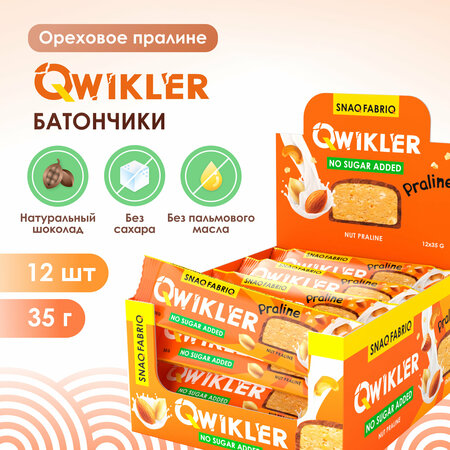 Батончик в шоколаде SNAQ FABRIQ Qwikler без сахара "Ореховое пралине", 12шт х 35г