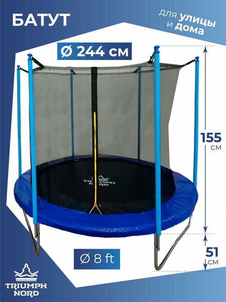 Батут Триумф Норд Дачный 244 см каркасный с защитной сеткой