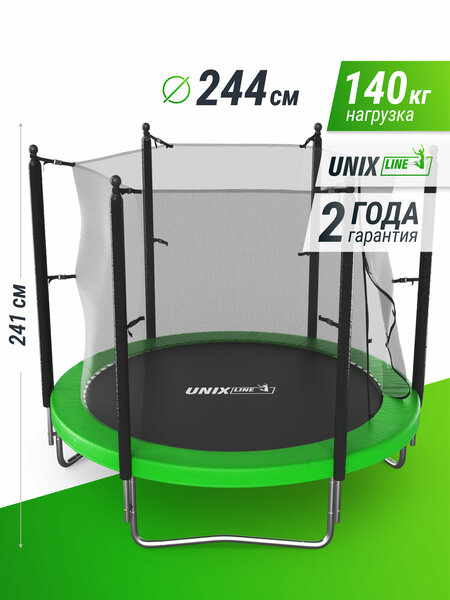 Батут UNIX Line Simple 8 ft Green (inside) UNIXLINE с внутренней защитной сеткой, общий диаметр 244 см