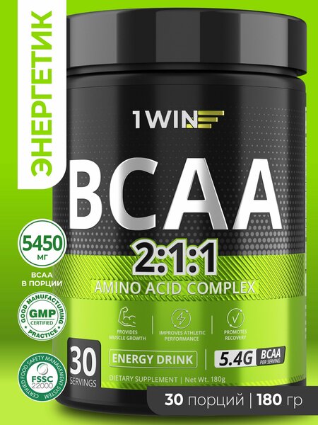 BCAA от компании 1WIN - это комплекс незаменимых аминокислот - лейцин, изолейцин и валин, которые содержатся в комплексе в пропорции 2:1:1. Мы выпускаем профессиональное спортивное питание в капсулах и в порошке. БЦА принимают перед тренировкой для повышения выносливости и сохранения мышечных тканей. После тренировки и в дни отдыха BCAA ускоряет восстановление и уменьшает болевые ощущения в мышцах. Аминокислоты жизненно важны для человеческого организма, и должны быть обязательным элементом диеты, так как наш организм не способен синтезировать их из других веществ. Употребление БЦАА способствует восстановлению мышечных тканей и синтезу белка, способствует улучшению концентрации, работоспособности и когнитивных функций мозга, улучшает краткосрочную память, предотвращает быструю утомляемость. спорт питание, спорт пит, спортпит, амино кислоты bcaa 2:1:1, бца, витамины спортивные для мужчин и женщин подарок мужчине. Добавка для набора массы для спорта вса вца вцаа порошок капсулы. Рекомендуется принимать 1 раз в день во время приема пищи. Одну мерную ложку (6 гр) нужно смешать со 150-200 мл воды. Длительность курса составляет 1 месяц. В дни тренировок принимайте одну порцию BCAA за 10-30 минут до тренировки, вторую порцию сразу после тренировки. Для лучшего восстановления и с целью подавления катаболизма прием BCAA рекомендуется после сна. Хранить вдали от детей, беречь от солнечных лучей, перед применением проконсультируйтесь с врачом или со специалистом. После вскрытия банки хранить плотно закрытым.
