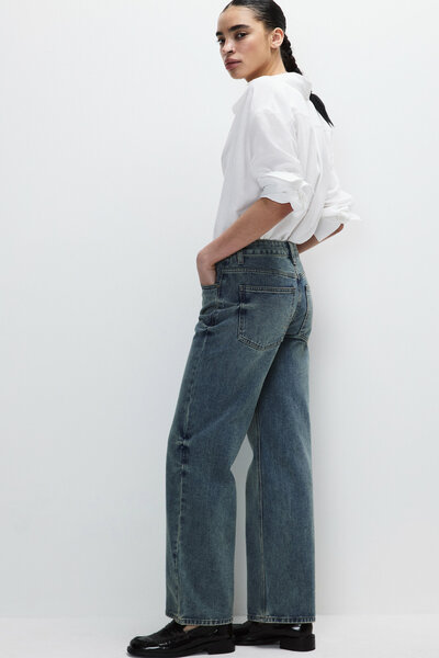 - Прямые женские джинсы straight fit из легкого хлопкового денима с добавлением вискозы - Стандартная средняя посадка подчеркивает фигуру и акцентирует внимание на талии. Классические пять карманов с металлическими заклепками спереди. Шлевки для ремня, застежка на молнию и пуговицу. Прямые штанины без подворотов и декоративных элементов - Джинсы прямого кроя с вареным эффектом для образов на любой случай жизни и любой сезон. Надевай джинсы в офис с классическим верхом и босоножками. Создавай расслабленные повседневные образы с комфортным верхом и кедами. Комбинируй классические джинсы с мини-юбками, яркими широкими ремнями или подвесками, создавая смелые образы. Заверши аутфит любой удобной обувью и стильными аксессуарами из новой коллекции Befree для максимальной уверенности в себе - Размер на модели: S