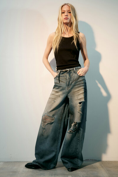 - Широкие женские джинсы baggy fit из 100% хлопкового денима - Классическая средняя посадка по талии. Застежка на молнию и металлическую пуговицу спереди, шлевки для ремня. Классические пять карманов с металлическими заклепками спереди. Декоративные рваные элементы и потертости по всей длине - Стильные рваные джинсы багги с актуальным эффектом грязного денима dirty denim идеально впишутся в гардероб и подойдут к трендовому стилю гранж. Сочетай рваные джинсы с денимными рубашками, создавая тотал-деним луки, разбавляй их любимыми футболками для создания трендовой многослойности. Сочетай джинсы с состаренным эффектом с любым верхом: рваные джинсы будут уместно смотреться в самых разных образах. Добавь любимую обувь и трендовые аксессуары Befree, чтобы чувствовать себя комфортно в любых ситуациях - Размер на модели: S