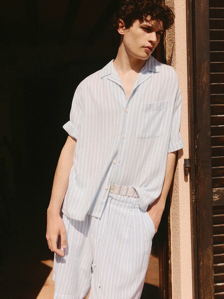 - Мужская рубашка свободного кроя из мягкой и дышащей ткани на основе льна - Отложной воротник с V-образным вырезом и лацканами. Застежка на мелкие пуговицы спереди. Нагрудный накладной карман. Короткие свободные рукава с прямыми манжетами и спущенной линией плеча. Прямой нижний край без разрезов и декоративных элементов - Стильная и легкая льняная рубашка внесет разнообразие в повседневный гардероб на теплое время года и подойдет даже на самую жаркую погоду благодаря дышащей натуральной ткани. Универсальная и практичная: сочетай ее с любимым низом и создавай ультратрендовые расслабленные луки на каждый день. Создай летний льняной костюм с шортами из комплекта. Носи однотонную рубашку также в качестве легкой верхней сорочки - Размер на модели: L