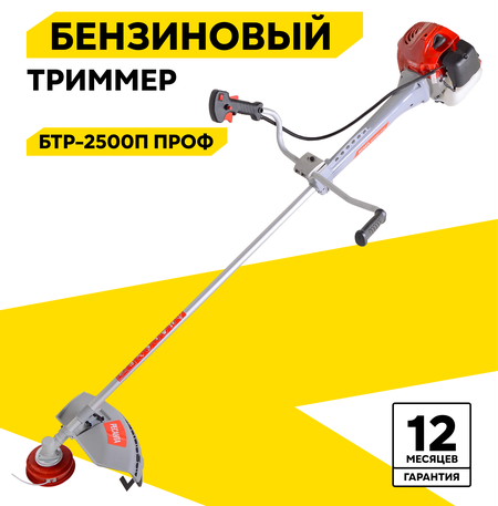 Бензиновый триммер БТР-2500П ПРОФ Ресанта - надежное и мощное устройство, которое поможет вам обеспечить электроэнергией ваше оборудование или дом во время отключения электричества или на природе. Номинальная мощность составляет 2500 Вт, а максимальная мощность - 2500 Вт. Уровень шума - 96 дБ. Запуск осуществляется вручную. Объем двигателя составляет 48,2 см³, а мощность двигателя - 3,41 л. с. Триммер оснащен двумя тактами и весит 9,385 кг. Разборный вал, плечевой ремень и блокировка от случайного включения делают использование этого генератора максимально безопасным и удобным. Бесключевая регулировка рукоятей и регулировка высоты ручек позволяют настроить генератор под себя. Антивибрационная система профессионального уровня позволяет работать триммером в 5 раз дольше обычного, не чувствуя при этом большого напряжения. Шесть шагов регулировки положения ремня для пользователей любого роста. Быстрая регулировка наклона рукояток одним винтом. В комплекте катушка с быстрой, безразборной заправкой лески «Easy Load». Ранцевый ремень в комплекте. Защитные очки. Диск 40 зубьев. Топливную смесь следует приготавливать из бензина с октановым числом не менее 92 и специального масла. Используйте высококачественное масло, предназначенное для двухтактных двигателей с воздушным охлаждением. В комплект поставки входят: генератор, ранцевый ремень, защитные очки, приводной вал, нож, катушка, ключи для сборки, инструкция по эксплуатации. Высота: 24.0 см. Уровень шума: 96.0 дБ. Емкость топливного бака: 1.2 л. Объем двигателя: 48.2 см³. Мощность двигателя: 3.41 л. с. Тип топлива: бензин АИ-92. Тип штанги: неразъемная. Бесключевая регулировка рукояток. Тип режущего инструмента: леска / нож. Ширина скашивания леской: 460 мм. Ширина скашивания ножом: 255 мм. Резьба триммерной катушки: М10х1.25 LH. Посадочный диаметр: 25.4 мм. Тип ножа: 40TP. Тип катушки: Easy Load. Тип ремня: ранцевый. Защитные очки. Приводной вал: жесткий
