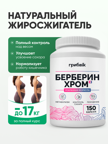 Берберин с хромом — это средство, известное своими мощными оздоровительными свойствами. Берберин хром помогает регулировать уровень сахара в крови, поддерживает нормальный уровень холестерина и способствует улучшению обмена веществ. Берберин 500 мг также обладает антиоксидантными и противовоспалительными свойствами, что помогает защитить клетки от повреждений. Регулярный прием берберина помогает контролировать уровень глюкозы в крови, улучшает чувствительность к инсулину, способствует нормализации уровня холестерина и помогает в управлении весом. Кроме того, он поддерживает здоровье сердечно-сосудистой системы и может способствовать общему укреплению иммунитета. Для тех, кто предпочитает зарубежные аналоги, предлагаем berberine, в том числе в дозировках berberine 500 и berberine для похудения, идеально подходящие для поддержания фигуры. Также доступны вариации для усиленного эффекта — берберин для похудения 1000, жиросжигатель берберин, хром пиколинат и комплекс хром берин. Специализированные продукты под брендом ГрибNik включают берберин грибник, а также варианты под запросы, такие как барберин, бербирин, барбарин и берберин турция, что подчеркивает широкий выбор и качество продукта. В каждой капсуле содержится 450 мг барбариса - 45 мг берберина и 50 мкг хрома. Принимать по 1 капсуле 1 раз в сутки до или после еды.