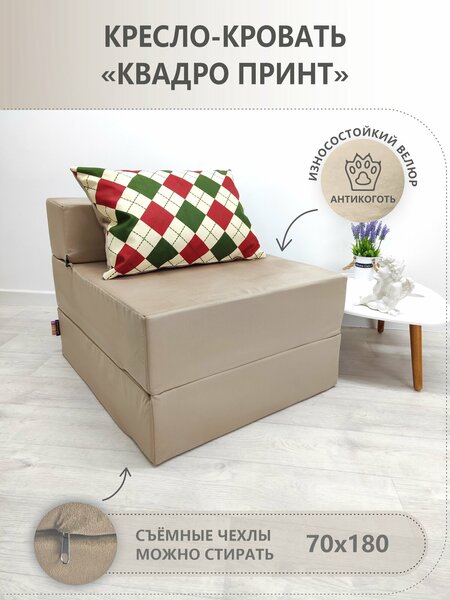 Наши технологи создали отличное кресло – кровать, подходящий для любого интерьера. Простота конструкции и малый вес кресла, позволяет с легкостью перемещать его в вашем доме. Внутренняя начинка наших диванов состоит из ортопедического пенополиуретанового матраса средней плотности. Независимо от ткани, все чехлы на диванах съемные. В любой момент их можно снять и постирать в стиральной машине в щадящем режиме при 30 градусах. Диван трансформер выполнен в виде кресла, что позволяет за считанные секунды разложить в полноценное спальное место и использовать как матрас. Бескаркасное кресло не имеет острых углов, что позволяет использовать в детских комнатах. Идеальный вариант для гостей, быстро разбирается и легко передвигается. Никаких лишних механизмов, что гарантирует долговечность использования дивана. Средняя - универсальная мебельная плотность пенополиуретановых матрасов, имеют комфортные ортопедические свойства, даже для ежедневного сна! Кресло кровать подходит для долгой эксплуатации, легко очищается любым средством для мебельных тканей. Идеально упаковано, доедет в любую точку выдачи. В целостной упаковке (вакуум), ломаться вообще нечему, всё собрано, останется только разложить матрас и наслаждаться крепким сном. У нас можно покупать кресло в различных цветах, использовать на балконе или как удобное кресло в гостиной, удостоверившись в качестве, всегда можно докупить до полноценного дивана. Бескаркасное кресло кровать легко впишется в интерьер детской, гостиной, балкона, кухни, спальни и загородного дома. Будьте уверены, вы покупаете сертифицированную, качественную современную мебель, которая прослужит вам многие годы! Размеры изделий (длина, ширина, высота, в см): в сложенном виде 70х80х60, в разложенном 70х180х20. Уважаемы покупатель, рекомендуем Вам подробно изучить инструкцию эксплуатации. *Возможна погрешность в размерах 1-2 см из-за сжатия. Обратите внимание, товар поставляется в вакуумной упаковке. Будьте аккуратны при вскрытии, чтоб не повредить кресло. Кресло принимает первоначальную форму, помятость ткани расправляются полностью в течении суток. * Цвета изделий в интернет-магазине и сайте может незначительно отличаться от реальных из-за особенностей цветопередачи монитора (это зависит от настроек вашего устройства).