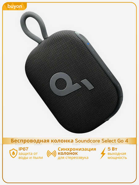 Anker SoundCore Select Go 4 — это миниатюрная беспроводная колонка с ярким дизайном. Несмотря на компактные размеры, Bluetooth-динамик с выходной мощностью 5 Вт обеспечивает мощный и впечатляющий звук, а также чистое и динамичное звучание, которое порадует даже самых требовательных слушателей. Корпус из пластика имеет тканевую обшивку, которая защищает гаджет от царапин и повреждений. Боковая панель управления прорезиненная, как и ножки снизу устройства — они не позволяют колонке скользить по поверхности, на которой та стоит. Базовое управление колонкой завязано на клавишах на корпусе, а для дополнительных возможностей и подробных настроек потребуется скачать бесплатное приложение Soundcore. В нем можно регулировать громкость, воспроизводить или ставить музыку на паузу, включить/выключить звуковые уведомления, активировать автоматическое выключение колонки для экономии заряда, а также обновить прошивку. Здесь же можно детально настроить эквалайзер, чтобы скорректировать звук под свои предпочтения: на выбор есть 4 готовых пресета с упором на разные частоты и кастомный вариант для более продвинутых пользователей. Активируйте функцию True Wireless Stereo (TWS) для сопряжения двух динамиков по беспроводной сети. Наслаждайтесь захватывающим звуком с улучшенным разделением стерео. Наслаждайтесь до 20 часов непрерывного воспроизведения музыки без подзарядки (при громкости звука 40%). Это идеальный вариант для продолжительных прогулок на свежем воздухе и мероприятий, которые рассчитаны на целый день. Кроме компактного размера и удобного крепления колонка имеет повышенный стандарт защиты от воды и пыли IP67. Этот сертификат гарантирует, что гаджет не выйдет из строя, если использовать его под дождем или рядом с водоемами, где на него могут случайно попасть брызги и капли.