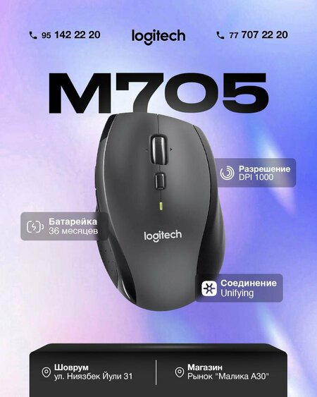 Беспроводная лазерная мышь Logitech M705 Marathon, эргономичная, с увеличенным сроком работы батареи