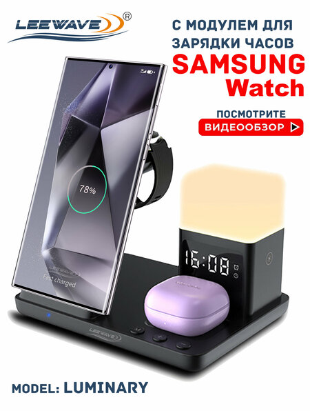 Достоинства:Компактная, выглядит опрятно, не воняет пластиком, Z Fold5, Buds3 Pro и Watch 7 заряжает одновременно Недостатки:Экранчик с часами выглядят очень дешево Комментарий:Хорошая док-cтанция, иронично но взял ее вместо фирменной самсунговской Wireless Trio, которая не дружит по какой-то причине с Buds3 Pro. Сквозная зарядка на 3 устройства работает без проблем, подключил через фирменный блок зарядного и провод Type-C от Samsung, который держит Super Fast Charge. Телефон на станции даже при наличии наушников и часов - заряжается через быструю беспроводную зарядку.