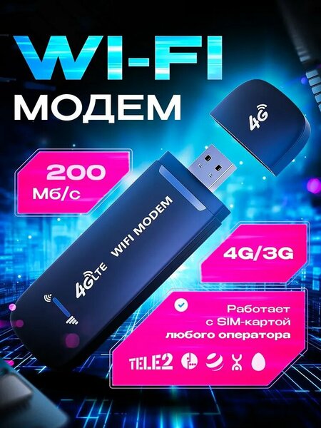 Беспроводной модем 3G 4G LTE USB; WI-FI black роутер от MIFI - это современное и функциональное оборудование, которое обеспечивает стабильное подключение к интернету. Модем оснащен Wi-Fi и Bluetooth, что позволяет подключать его к различным устройствам. Он легко подключается к вашему устройству одним движением, а его компактный размер позволяет брать его с собой в любую поездку. Модем работает на максимальной скорости интернета 150 Mb, что позволяет использовать его в любых условиях. Он поддерживает все диапазоны частот 3G/4G России, включая FDD, TDD, WCDMA и HSPA+. Роутер 4G обеспечивает стабильный сигнал интернета, независимо от местоположения. Он поддерживает хорошую скорость при любой удаленности от вышки оператора. Для модема подойдет любая сим-карта стандартного размера (USIM/SIM MICRO), но рекомендуем использовать сим-карту стандартного размера (USIM (большая)). Он работает с такими операторами, как МегаФон, МТС, Билайн, Tele2 и другими. Настройка модема происходит автоматически. Модем совместим с смартфонами и планшетами и станет отличным помощником для тех, кто хочет быть всегда на связи.