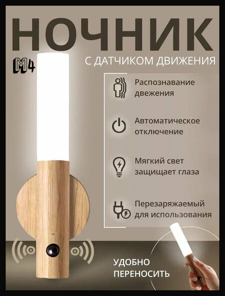 Комментарий:Это вертикальный светильник, который заряжается от розетки и крепится на двойной скотч и держится за счет двух маленьких магнитов. понравилось. на режиме авто работает от движения, светит мягко жёлтым светом. разместили на опоре лестницы, удобно очень.