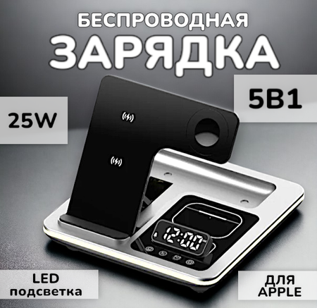 Беспроводное зарядное устройство 5в1 - это многофункциональное решение для зарядки ваших устройств. Оно совместимо с различными моделями смартфонов APPLE, и позволяет одновременно заряжать до трех устройств. Быстрая зарядка: благодаря технологии быстрой зарядки, вы можете быстро и эффективно зарядить ваши устройства, экономя время и энергию. Док-станция с LED подсветкой: устройство оснащено LED подсветкой, которая позволяет легко найти его в темноте или в условиях низкой освещенности. Зарядная станция для часов, наушников, телефона: устройство позволяет заряжать различные аксессуары, такие как часы, наушники и телефоны, что делает его удобным и практичным решением для вашего дома или офиса. Выбирая беспроводное зарядное устройство 5в1, вы получаете многофункциональное и удобное решение для зарядки ваших устройств, которое поможет вам сэкономить время и энергию, а также обеспечит комфорт и удобство использования.