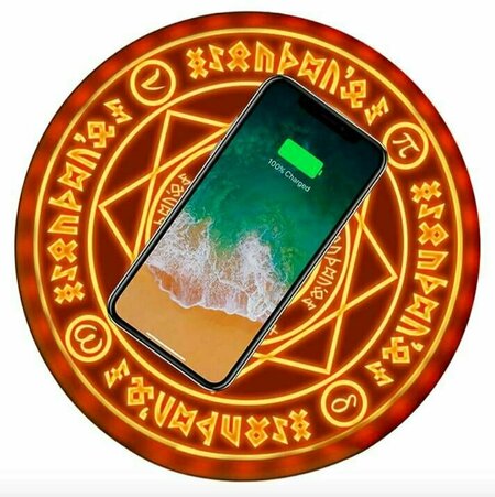 Беспроводная зарядка для мобильных телефонов Magic Light Array – это не только замечательный способ заряжать ваши смартфоны, это еще и красивый аксессуар, который будет прекрасно смотреться на вашем письменном столе. Беспроводная зарядка Magic Light Array сделана в фэнтэзийном «магическом» дизайне, имеет красивую подсветку, которая будет привлекать внимание всех ваших гостей. Беспроводная зарядка Magic Light Array представляет собой красивый диск из прочного цветного пластика. В отличие от остальных заурядных зарядок внутри устройства есть светодиоды, которые красиво и ярко светятся. Дизайн зарядки сделан в «магическом» стиле, когда Беспроводная зарядка Magic Light Array включена в сеть, она напоминает некий волшебный артефакт. Он действительно волшебный, ведь достаточно просто положить на этот диск свой смартфон, он начнет быстро и эффективно заряжаться. Для работы Беспроводной зарядки Magic Light Array необходимо подключать ее к электрической сети 220 вольт. Универсальная беспроводная зарядка для всех мобильных телефонов, поддерживающих данную технологию. Сегодня такой способ зарядки становится обязательным стандартом. Практически все топовые и даже смартфоны средней ценовой категории можно заряжать без проводов. Если на вашем смартфоне есть маркировка Qi – это значит, что он поддерживает технологию заряжания смартфонов без проводов. Многие производители телефонов выпускают фирменные дорогие зарядки, но на самом деле технология универсальная и Беспроводная зарядка Magic Light Array подходит ко всем телефонам!