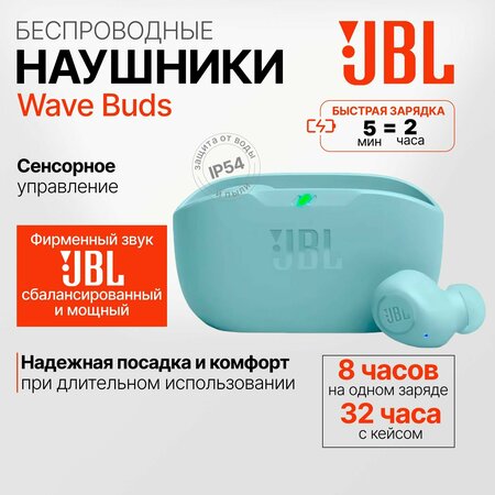 Наушники True Wireless JBL Wave Buds — аксессуар закрытого акустического типа, сопрягаемый со сторонними устройствами посредством Bluetooth версии 5.2 (дальность в помещении достигает 10 м). Уровень сопротивления равен 16 Ом, чувствительности — 100 дБ. Поддерживается широкий частотный диапазон — от 20 Гц до 20 кГц. Амбушюры выполнены из силикона, что придает им повышенную износостойкость и прочность. В комплектации — футляр с зарядным устройством и кабель для зарядки. Степень защиты корпуса от воздействия влаги — IP54. Предусмотрены элементы управления воспроизведением, вызовами, есть возможность активации голосового помощника. Время работы на одном заряде — до 8 часов, с кейсом — до 32 часов. Приложение JBL Headphones позволяет наслаждаться музыкой так, как удобно вам. Настройте прослушивание и сенсорные жесты для управления, найдите наушники, управляйте внешним шумом и используйте режимы «Интеллектуальное аудио и видео». Скачайте бесплатное приложение и узнайте, сколько еще вы можете сделать.
