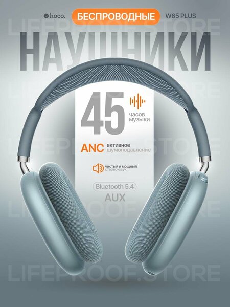 Полноразмерные наушники с шумоподавлением Hoco W65 Plus; зарядный кабель type-C; кабель AUX
