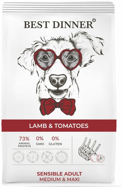 BEST DINNER 15кг корм сухой для собак средних и крупных пород Ягненок с томатами (15 кг)