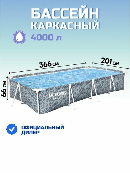 Каркасный бассейн Bestway 366х201х66 см, прямоугольный, 4000 л, серый, модель Pool 561FT