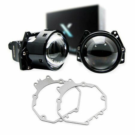Два модуля, две переходных рамки, это все, что потребуется Вам для замены штатных би-ксеноновых, либо галогеновых линз. Новые светодиодные линзы крепятся взамен штатных при помощи переходных рамок, которые идут в комплекте. Мощность билед линз 40 Ватт, световой поток составляет 3 600 люмен. После замены штатных линз на новые, светодиодные, качество света по показаниям люксометра увеличится до 10 раз! Ни одна ксеноновая/светодиодная лампа не даст такой прибавке в свете! Характеристики: