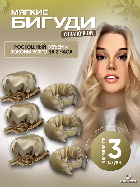 Orlovence бигуди мягкие с шапочкой на ночь. Молочные. Набор 3 шт.