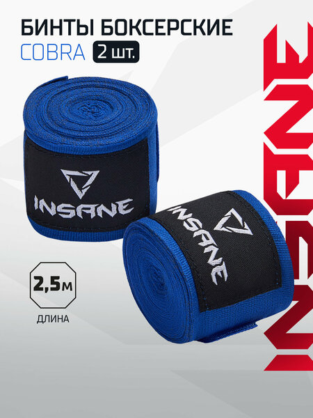 Боксерский бинт 2,5 м Cobra от бренда INSANE - это незаменимый аксессуар для любителей бокса и опытных спортсменов. Он обеспечивает защиту суставов кистей рук во время тренировок и боев. Спортинвентарь изготовлен из хлопка и нейлона высокого качества, такая комбинация материалов позволяет боксерскому бинту хорошо тянуться и обеспечивает максимальное прилегание к руке. Петля для большого пальца и застежка-липучка помогают быстро и надежно зафиксировать эластичный бинт на кисти руки. Такая система фиксации позволяет легко регулировать размер бинта для бокса в зависимости от индивидуальных потребностей спортсмена. Кроме того, она предотвращает смещение аксессуара во время тренировки или боя. На внешней стороне кистевого бинта расположена нашивка с логотипом бренда, которая придает ему дополнительную эстетическую привлекательность. преимущества: Хорошо тянется благодаря комбинированному составу; Надежно фиксируется застежкой-липучкой; Не слетает благодаря петле для большого пальца; Эффектный дизайн с логотипом бренда. характеристики: Mатериал: 40% хлопок, 60% нейлон Цвет: синий Размер (длина, м): 2,5 м Размер (ширина, см): 5 м Количество в упаковке, шт: 2 Тип упаковки: полиэтиленовый пакет Производство: Пакистан