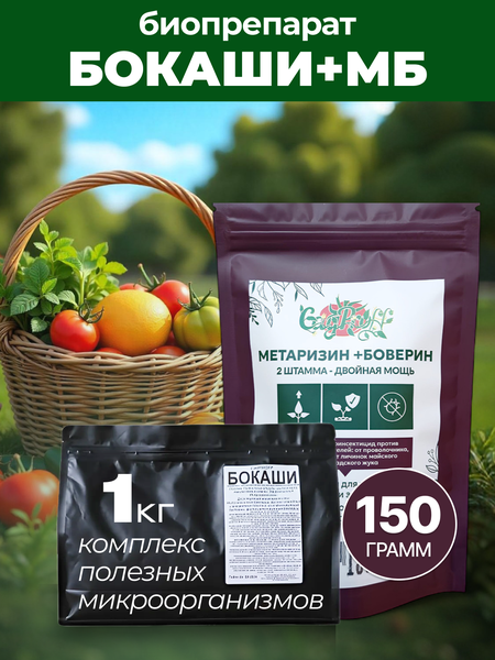 Набор из двух биопрепаратов для защиты и питания растений. Бокаши - комплекс агрономически полезных микроорганизмов. Удобрение бокащи готовят для овощей и деревьев питательные соединения, которыми те могут питаться. Попадая в почву микроорганизмы выделяют фитогормоны, ферменты, антибиотики и другие полезные вещества. А из минералов почвы высвобождаются азот, фосфор, калий и другие макро и микроэлементы. Это позволяет использовать бокаши в качестве альтернативы минеральным удобрениям и пестицидам с очень большой эффективностью. Бокаши используют как средство для компостирования растительных и органических остатков, для компостной ямы, для повышения плодородия и оздоровления почвы, стимулирования развития корневой системы, устойчивости растений к болезням и неблагоприятным условиям, увеличения урожайности. Они эффективно устраняют запахи в загородных туалетах, подстилках домашних птиц и скота. Экологичны и безопасны! Расход препарата 1 стакан (200мл)на 1 кв. м. Препарат «МБК» – почвенный инсектицид, разработан на основе грибов Метаризин и Боверин. Антихрущ препарат эффективен для борьбы с вредителями, живущими и зимующими в почве. Биопрепарат предназначен для борьбы с вредными насекомыми: медведка и колорадский жук, трипса и хрущ, майский жук и проволочник. Биоинсектицид эффективен в борьбе с паутинным клещем и листоверткой, белокрылкой и капустной совкой, и другими насекомыми. Товары для дачи предназначены для теплиц и открытого грунта. Средство вносят в почву любым доступным способом: полив из лейки, опрыскивание лунки и борозды, смешивание с жидкими биоудобрениями. В сухом виде препарат рекомендуется вносить во влажную почву для достижения большего эффекта. Обработку можно производить в любое время вегетации растения, так как препарат не имеет сроков ожидания, класс опасности 4 (малоопасен). Норма применения: 3гр/1л. воды в виде раствора и 5-10гр. на 1кв. м при внесении в сухом виде. Инструкция к препаратам на упаковке.