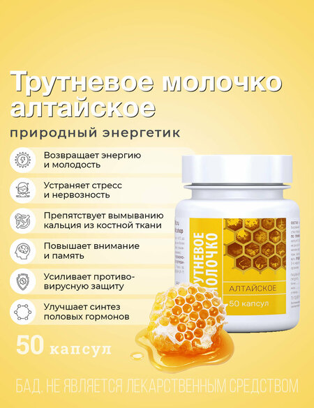 Трутневое молочко содержит: - полноценные белки и весь набор незаменимых аминокислот; - ферменты, участвующие в образовании глутатиона – главной антиоксидантной защиты организма; - витамины группы B, A, D, E. - ненасыщенные – деценовые жирные кислоты, обладающие противовирусными свойствами, в особенности против вируса клещевого энцефалита; - натуральные гормоны и прогормоны – прогестерон, эстрон, эстрадиол, тестостерон, которые необходимы организму в процессе старения, а также в период полового созревания при различных дисфункциях репродуктивных органов; - макро- и микроэлементы: кальций, йод, фосфор, цинк, железо, сера, серебро, калий и многие другие, в том числе и ультрамикроэлементы, выполняющие важную роль в информационных передачах. Трутневое молочко алтайское 100%.