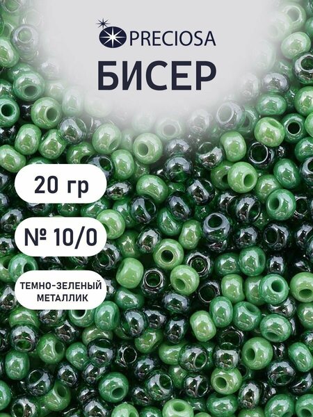 Чешский бисер Preciosa – аккуратно откалиброванный и без бракованных элементов. Каждая его партия имеет одинаковый размер и цвет. Бисер круглой формы – универсальный, подходит и для вышивки, и для плетения украшений, фигурок, других поделок. Бисеру из чешского стекла Preciosa доверяют мастера со всего мира. Он надолго сохранит яркость и цвет, в том числе при контакте с кожей. Вышитые бисером изделия допускается стирать в ручном режиме при температуре до 40 градусов Цельсия. В наборе 4 цвета, ассорти темно-зеленого 'металлик'. В упаковке 20 г. Внимание! Оттенки бисера могут незначительно отличаться от представленных на фотографии. Это зависит от партии товара, настроек монитора, освещения, а также светоотражающих свойств материала.