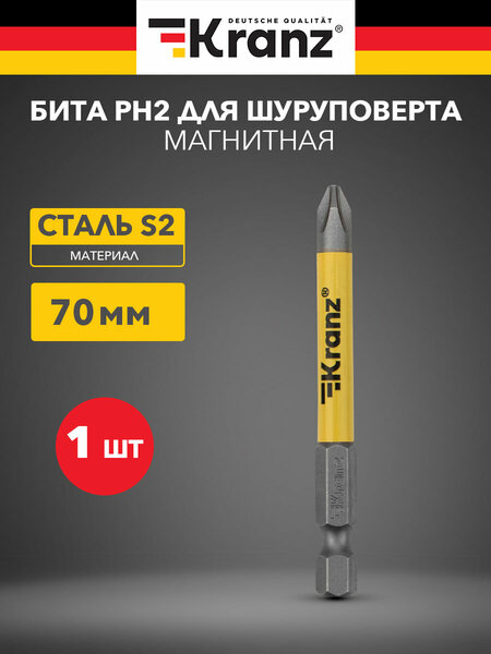 Бита износостойкая для шуруповерта KRANZ с магнитным наконечником PH2х70 мм 1 шт.
