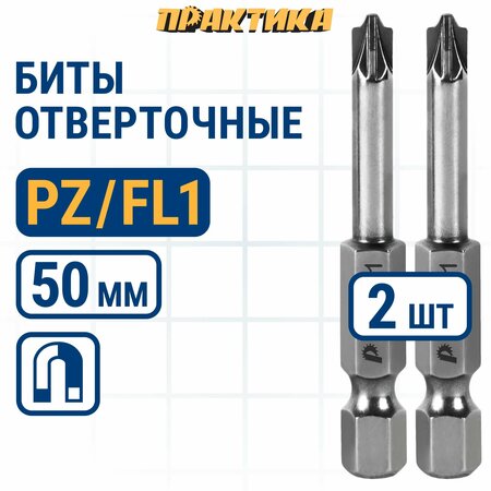 Биты для шуруповерта/биты отверточные PZ/FL1 х 50мм ПРАКТИКА Профи для электротехнических работ 2 шт