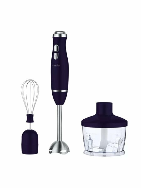 Мощный кухонный процессор с металлическим съемным блендером.2 скоростных режима для жидких и вязких продуктов, а также плавная регулировка скорости для предотвращения разбрызгивания смеси и плавного перехода к оптимальной скорости. Все самое необходимое в комплекте: венчик для взбивания, металлическая насадка блендер, измельчитель с ёмкой прозрачной чашей. Удобен и прост в использовании, занимает при хранении минимум места. Кухонный процессор создан для легкого приготовления разнообразной выпечки, десертов, взбитых сливок, кремов и мороженого. Блендер с чашей легко впишется в дизайн любой кухни, не занимая много места, но при этом оставаясь всегда под рукой. Мощность 900 Вт - (максимальная мощность мотора при блокировке двигателя). измельчение и смешивание, техника для кухни, ручной блендер, измельчитель ручной, блендр, овощерезка электрическая, смузи блендер, блендер с чашей