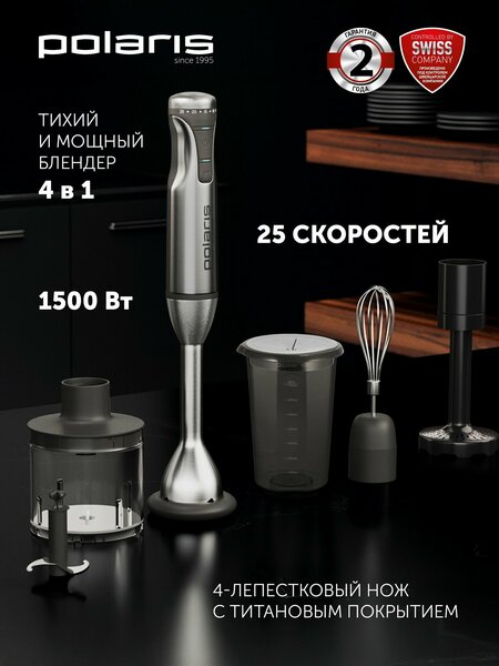 Представляем вашему вниманию уникальный и мощный блендер Polaris PHB 1583L Silent - это идеальное решение для тех, кто любит готовить вкусные блюда и хочет экономить время на приготовление пищи. Основное отличие этого блендера от других моделей - его мощность в 1500 Вт, которая позволяет быстро и эффективно перемешивать различные ингредиенты. Кроме того, он оснащен режимом Турбо, который обеспечивает дополнительную мощность во время приготовления сложных блюд. Технология SilentPRO: работает в 2 раза тише. Технология PROtect+ двойная защита двигателя (от перегрева и перегрузки) обеспечивает надежность и долговечность. Мощность: 1500 Вт. 4 В 1: измельчитель, миксер, блендер И насадка для пюре.4-лепестковый нож с титановым покрытием работает в 2 раза эффективнее и сохраняет прочность и остроту на долгие годы. Кнопка включения и режим турбо с подсветкой. 25 скоростей с плавной регулировкой скорости. Насадка блендера и венчик из нержавеющей стали. Подставка для блендера. Крышка для стакана с защитой от брызг. Чаша измельчителя объемом 0,5 л. Мерный стакан объемом 0,7 л. Удобен в применении и очиcтке.