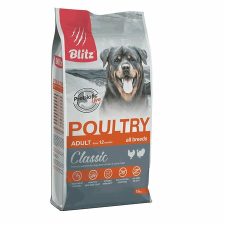 Blitz Adult Dog Poultry Classic сухой корм для взрослых собак всех пород, домашняя птица 15 кг