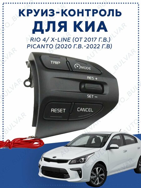 Достоинства:Почти как оригинал, качественный пластик, плотно собран, надписи и значки. Красная подсветка «на глаз» не отличается. Недостатки:Нет. Кому докопаться, тот докопается. Нет QR кода внутри. Комментарий:Подошел на RIO4 2020 года Comfort, без проводов. Сначала снял минус с аккума, открутил старый блок (2 винта), затем отстегнул подушку (3 защелки), повесил её на проводах, отключил разъем старой кнопки. Собрал в обратной последовательности. 5 минут. Лимитер/Круиз работают. Нижний порог держит - педаль отпустил едет, верхний предел держит - жми как хочешь бестрее не поедет. Педаль сцепления, как и педаль тормоза моментально сбрасывают установки, управление переходит на водителя.