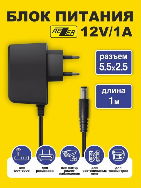 Блок питания 12В, 1А от Rezer - это надежное и стабильное решение для питания широкого спектра устройств. Благодаря совместимости с различными устройствами, такими как системы видео-наблюдения, видеокамеры, маршрутизаторы, роутеры, модемы, телевизионные приставки, электронные кассы, терминалы для оплаты, POS терминалы, электрические бритвы, эпиляторы, диодные ленты и другие электронные устройства с напряжением 12 вольт и гнездом питания 5,5*2,5 мм, данный блок питания станет незаменимым помощником в вашем доме или офисе. Стабильное и надежное питание: Блок питания обеспечивает стабильное и надежное питание для ваших устройств, гарантируя их долгосрочную и безопасную работу. Прочный и долговечный штекер: Штекер блока питания имеет внутренний диаметр 2,5 мм и внешний диаметр 5,5 мм, что обеспечивает надежное и прочное подключение к вашему устройству. Длина кабеля составляет 100 см, что позволяет удобно расположить блок питания на рабочем месте. Выбирая блок питания 12В, 1А от Rezer, вы получаете надежное и стабильное питание для широкого спектра устройств, а также удобство и долговечность в использовании.