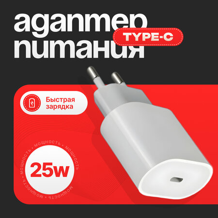 Блок питания / зарядка для айфона / блок питания type c/ зарядное устройство для телефона - это удобное и многофункциональное устройство, которое позволяет быстро и эффективно зарядить ваш телефон, планшет или другие гаджеты. Быстрое зарядное устройство для Iphone, Samsung, Huawei различных серий и большинства моделей Ipad. Стандарт быстрой зарядки: Quick Charge 3.0, Quick Charge, Quick Charge 2.0, Power Delivery, Fast Charge 2.0, Fast Charge, AFC (Samsung), SCP (Huawei). ✅Адаптер питания обеспечивает защиту мобильного устройства от перегрузки и короткого замыкания; ✅ Компактное зарядное устройство для iPhone USB C мощностью 25 Вт даёт возможность быстро заряжать устройство дома, в офисе или во время поездки. ✅Эффективное технологическое решение данного блока питания позволяет зарядить аккумуляторную батарею телефона до 50 % уровня заряда всего за полчаса. ✅Аксессуар поддерживает технологии: PD 3.0, QC 3.0 и QC 2.0, Huawei FCP/SCP, Samsung AFC и другие протоколы быстрой зарядки; ✅Корпус изготовлен из прочного и приятного на ощупь пластика, что делает устройство практичным и удобным в повседневной эксплуатации; ✅Зарядка для телефона (СЗУ) совместима с любыми устройствами, оснащенными портом USB-C, TYPE C. Кабель в комплектацию зарядного устройства не входит. Назначение: Для аудио- и телевизионной техники, Для геймпада, Для мобильных телефонов, Для наушников, Универсальные, Для офиса, Для планшетов, Для смартфонов, Для смарт-часов, Для устройств Apple, Для устройств на Android, Для сетевого оборудования, Для фото- и видеотехники, Для GPS-навигаторов, Для видеорегистраторов, Для игр.