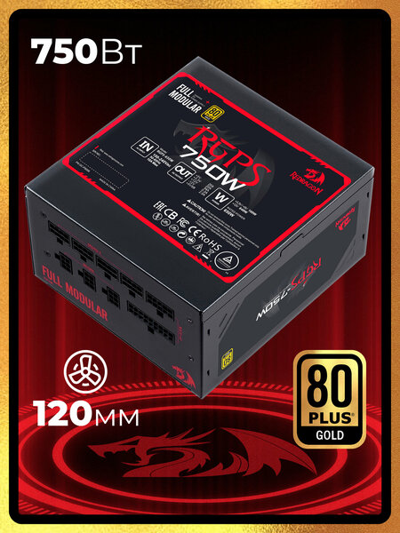 Блок питания для ПК Redragon RGPS-750W. 750Вт, модульный, 80 Plus Gold