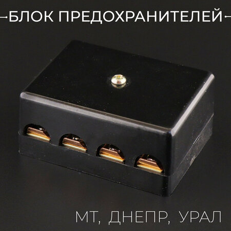 Блок предохранителей для мотоциклов МТ, ДНЕПР, УРАЛ - это надежный и качественный аксессуар, который обеспечит безопасность и стабильность работы электрической системы вашего мотоцикла. Блок предохранителей МТ, ДНЕПР, УРАЛ Блок предохранителей для мотоциклов Урал, Днепр, мт. Под 4 предохранителя (8 контактов - 4 вход и 4 выход). Длина блочка 60 мм, ширина 40 мм. Выбирая блок предохранителей для мотоциклов МТ, ДНЕПР, УРАЛ, вы получаете надежный и качественный аксессуар, который обеспечит безопасность и стабильность работы электрической системы вашего мотоцикла.