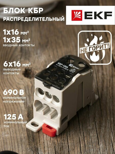 Блок распределительный КБР на DIN-рейку и монтажную панель 125A EKF PROxima - 1 шт.