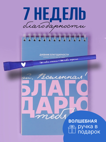 Наверняка ты слышала про практику благодарности. Может сегодня день, когда пора применить! Благодарность - это самая сильная энергия, которая есть в мире! Впереди 7 недель, чтобы выразить всю благодарность вселенной. Скетчбук недатированный сделан по методологии Роберта Эммонса. Он провел эксперимент с благодарностью и выявил факты изменения благосостояния, радушия, позитивных перемен в тестовой группе. 6 минут в день и ты станешь новой версией себя За 50 дней ты вспомнишь свои успехи и вдохновишься на новые. Наводящие вопросы и блок для аффирмаций — позитивных установок, помогут выработать привычку видеть хорошее вокруг как женщине, так и мужчине. Эта милая канцелярия подойдет любому, кто стремится к улучшению своего благополучия и эмоционального состояния. Ведение творческого блокнота для записей будет полезным для тех, кто испытывает стресс, тревогу или негативные эмоции. Подойдет для тех, кто хочет улучшить психологическую и эмоциональную жизнь подруге, другу, коллеге. Ежедневник содержит 80 плотных страниц из качественной мелованной бумаги размера 17х21 см, что обеспечивает легкое скольжение ручки во время письма и приятные тактильные ощущения. Картонная обложка позволяет не переживать за сохранность милой штучки при ежедневном использовании. Пусть каждая страница наполнится положительными эмоциями и радостью от жизни. Подари уникальный дневник благодарности и позволь вселенной наполниться любовью и радостью! Записывай свои мысли, желания и благодарности, делай интересные записи и сохраняй самые яркие моменты своей жизни. Стильный дневник с удобной ручкой в подарок станет отличным подарочным решением для нового года 2025, на день рождения маме или просто так, чтобы выразить свою благодарность близкому человеку. Пусть каждая страница этого женского или мужского блакнота станет лестницей к счастью и удовлетворению. Ведите его с любовью и искренностью, и он вернет вам тепло и радость в ответ.