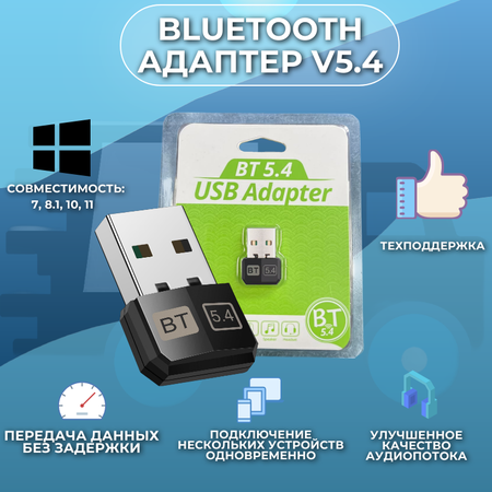 USB Адаптер для ПК Bluetooth версии 5.4 Для подключения наушников, гарнитур микрофонов, колонок Приёма Передатчик файлов музыки и данных Беспроводной USB адаптер Bluetooth - это посредник между вашим ПК ноутбуком и любой беспроводной портативной техникой и периферией. Адаптер использует технологию Bluetooth 5.4 которая позволяет ему работать с низким потреблением энергии, но поддерживать высокие скорости передачи информации. Это идеальный выбор для тех, кто хочет слушать музыку и смотреть фильмы на своем компьютере или ноутбуке, использовать свои беспроводные наушники или колонки. При помощи USB Bluetooth - приемника вы так же сможете соединить ваш смартфон с компьютером без проводов, для передачи данных, обмена информацией и для загрузки различного вида мобильного контента. Применение: - Беспроводные наушники и гарнитуры - Беспроводной караоке микрофон - Блютус динамики, акустические системы, домашние кинотеатры, саундбары, бумбоксы и мобильные колонки и т. д.- КПК, мобильный телефон, планшет, iPhone, iPad, Android и т. д. Система поддержки: Windows 7 8 8.1 10 11 - Поддержка мобильных телефонов, настольных ноутбуков, Bluetooth-гарнитур динамиков мышей клавиатуры, цифровых камер, факсов, принтеров и других беспроводных соединений для передачи аудио и данных и обмена ими. Без каких-либо препятствий, самое длинное расстояние передачи может быть до 20 м, Учитывая, что сигнал Bluetooth мешает другим устройствам, рекомендуемое расстояние лучше всего использовать 5-10 м. USB 3.0 2.0