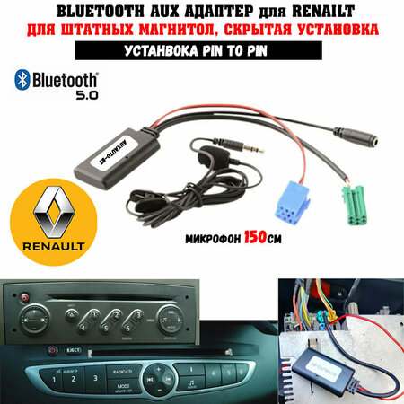 К вашему вниманию Bluetooth AUX для Renault вам больше не придется записывать музыку на CD диски или пользоваться радио трансмиттерами! С помощью адаптера вы сможете прослушивать любые композиции с телефона или любого другой музыкального проигрывателя имеющего Bluetooth. Bluetooth для Рено подходит на следующие модели : Автомобили которые уже имеют AUX выход (список автомобилей шире к нему можно запараллелить данный адаптер), а Так же которые не имеют выхода но есть функция AUX. Важно понимать что функция аукс должна быть должна быть активна без адаптера, адаптер её не активирует, смотрите как активировать аукс в интернете. Для Renault Clio (модели 2005 2011) Для Renault Espace (модели 2005 2011) Для Renault Kangoo (модели 2005 2011) Для Renault LAGUNA (модели 2005 2011) Для Renault Megane (модели 2005 2011) Для Renault Scenic (модели 2005 2011) Для Renault Trafic (модели 2005 2011) Для Renault Twingo (модели 2005 2011) Для Renault Modus (модели 2005-2011) Для Renault Master (модели 2005-2011) Характеристики : Название: Bluetooth адаптер Материал: Пластик Кабель Длина: 17.5cm Черный: земля- Красный: 12 В ACC + Bluetooth Разъем модуля: 12 В Совместим с магнитолами с внешним CD чейнджером Общая инструкция по установке Bluetooth адаптера для Renault: 1. Заглушите двигатель и достаньте ключи из замка зажигания. 2. Снимите части обшивки, которые мешают снятию магнитолы. 3. Выньте магнитолу из посадочного отверстия и отсоедините штекеры. 4. Подключите Bluetooth в разъем чейнджера, достаточно просто установить в нужный разъем как на фото 6. После этого необходимо проверить работу чейнджера и самого устройства. Включите зажигание. На магнитоле необходимо выбрать режим AUX. 7. Подключите телефон через Bluetooth и включите воспроизведение звуков на этом устройстве. Звук с этого устройства должен воспроизводиться через колонки автомобиля. 6. После успешной проверки установите магнитолу и снятые детали обшивки. Мы будем рады если вы оставите положительный отзыв купив Bluetooth адаптер для Renault в нашем магазине.