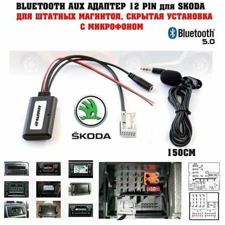 Bluetooth AUX адаптер для Skoda с микрофоном /Bluetooth для Skoda Octavia, А5, А7, Yeti, Fabia, Superb, Rapid
