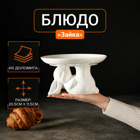 Блюдо для десертов и сервировки стола Доляна «Зайка», d=20,5 см, цвет белый