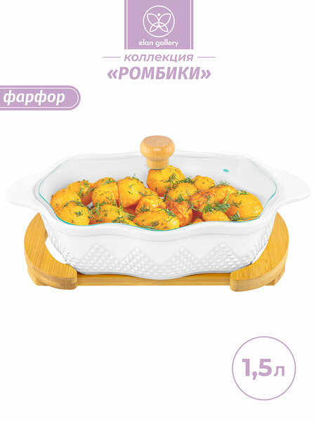 Блюдо для запекания и сервировки серии "Ромбики" на 1,5 литра имеет крышку и подставку. Емкость можно использовать для выпечки в духовом шкафу или как декоративную тарелку для подачи горячего, закусок, десертов, сыра, фруктов и других продуктов. Блюдо выполнено из высококачественного белого фарфора и украшено декоративными рельефными узорами. Фарфоровая посуда отличается от керамической повышенной плотностью. Фарфор не впитывает цвет продуктов и не деформируется от влаги, чему может быть подвержена керамика. Размер набора 32х20х14 см. Емкость без крышки и подставки подходит для духовки, микроволновки и посудомойки. Рекомендованный температурный режим от -24 до +220 градусов. Беречь от резких перепадов температур. Крышку и подставку нельзя замачивать, использовать в СВЧ и ПММ. Набор поставляется в стильной картонной упаковке. Сервировочное блюдо из серии посуды "Ромбики" станет настоящим украшением праздничного стола и кухни или приятным подарком для ваших родных и близких!
