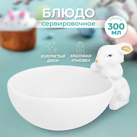 Блюдо «Кролик» предназначено для эстетичной подачи блюд и закусок. Размер изделия – 18х10,2х8 см, объём – 300 мл. Выполнено из керамики. За край глубокого блюдца держится милый белый кролик, любопытно заглядывающий внутрь. Фигурка не снимается! Светлая Пасха – один из главных праздников весны! Мы разработали коллекцию сезонных товаров для дома, которые помогут создать радостную и уютную атмосферу в квартире или на даче. Пасхальный декор преобразит домашний интерьер и поможет встретить праздник в кругу любимых. Используйте фигурное сервировочное блюдо в виде пасхального животного для подачи любых закусок и угощений на празднике. Подойдёт для солений, оливок, орехов и сухофруктов. Наполните его сырной или мясной нарезкой. Подайте конфеты, печенье, безе, зефир и другие сладости. Наполните овощной и фруктовой нарезкой, чтобы порадовать гостей. Красиво подайте к столу пару яиц для традиционного пасхального катания. Блюдце станет оригинальным украшением вашего стола и необычным дополнением кухонного инвентаря! Добавьте вашей кухне атмосферу маленького чуда. Не рекомендуется применять абразивные моющие средства. Нельзя использовать в микроволновой печи и посудомоечной машине. Поставляется в стильной картонной коробке – благодаря ей вам не потребуется дополнительная подарочная упаковка. В коллекции бренда Elan Gallery вы найдёте большой выбор декоративной посуды и сувениров – каждый обязательно подберёт вариант на свой вкус. Изделия станут чудесным подарком для родных, близких и коллег. Наполните пространство вокруг себя радостью и весенним настроением!