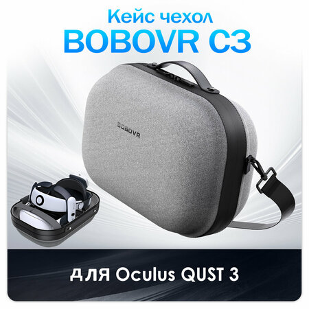 BOBOVR C3 чехол кейс для S3 pro и крепления Oculus Quest 3 /3S Совместимость с Quest 3/3S: Специально разработанный для BOBOVR S3 Pro головной ремень, высококачественный внешний вид и внутренняя конструкция поддержки Высококачественный материал: Основной корпус изготовлен из 6-миллиметрового закаленного материала, более прочного и эластичного, с уровнем твердости HRC 80. Кроме того, все критические точки соединения, несущие нагрузку, выполнены из металла. Материал поверхности изготовлен из износостойкой ткани Dragon Dance, что делает C3 одновременно прочным и стильным. Инновационный режим настольной подставки: Вы можете переключаться между двумя режимами - на ходу и настольным - быстрым переключением, при этом в настольном режиме высота уменьшается всего до 105 см/4,13 дюйма. В режиме настольной подставки вы можете легко получить доступ к своему устройству виртуальной реальности, не открывая крышку, что позволяет сохранить порядок на рабочем столе. Увеличенное пространство для хранения: Идеально подходит для хранения Quest3/3S с ремешком S3 Pro и большинства ваших аксессуаров. В комплект также входит специальная сетчатая сумка на молнии для мелких предметов, таких как зарядные устройства, кабели и аккумуляторы. Два режима путешествия: Чехол C3 поставляется с плечевым ремнем. В соответствии с различными сценариями путешествий, C3 можно использовать как портфель для передвижения на короткие расстояния или в режиме слинг-кейса для дальних поездок. Комплектация Кейс чехол BOBOVR C3 - 1 шт