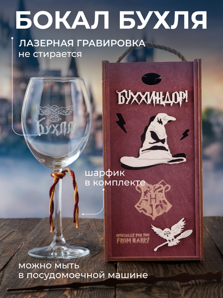 Для настоящий фанатов ГарриПоттера: бокал для вина в коробке с гравировкой в подарок на день рождения, годовщину, свадьбу, Новый год, юбилей и любой другой праздник. Для большего погружения мы добавили в комплект шарфик Гриффиндора на ножку бокала и волшебную палочку Дамблдора. Бокал в коробке имеет классическую форму и изготовлен из прочного стекла. Подарок отлично подойдет как для вина, так и для других алкогольных и безалкогольных напитков, пикника. Подарочные коробки для бокала идут в комплекте с бокалом 550 мл что делает его хорошим подарком для сестры, подруги, коллеги или любимой жены.